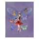 Uma bailarina gira nos dedos dos pés em uma fantasia vermelha e preta. Ela é cercada por borboletas coloridas em tons de verde, azul, rosa, ouro e marrom. O fundo da imagem é um violeta mutado contendo as grandes asas mutadas de uma borboleta. Personalize com sua própria legenda, nome ou monograma.