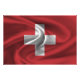 Impressão fotográfica com a bandeira da Suíça em design de tecido ondulado. Este design apresenta as cores e o design da bandeira suíça com um efeito de textura de material ondulante lindo. Este design de bandeira é uma ótima maneira de mostrar que você tem orgulho de ser da Suíça.