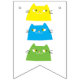 Trendy, moderna, fofa, colorida, Purrfect Birthday com bandeiras para crianças, com foto personalizada da garota e de gatos kawaii engraçados.