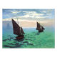 Barcos de pesca monet na impressão marítima. Pintura a óleo na canvas de 1868. Monet pintou barcos de pesca frequentemente. Esta pintura marina é uma de suas primeiras obras e mostra seu progresso em direção ao impressionismo. Três barcos de pesca navegam sobre ondas verdes do mar com nuvens madrugadas flutuando sobre as costas. Um presente bonito para fãs de Claude Monet, Oceanscapes e pinturas de embarcações de pesca.