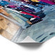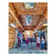 Um animado bazar norte-africano cheio de compradores explorando as coloridas telas têxteis. Designs de teto insípidos acrescentam à atmosfera vibrante, capturando uma rica experiência cultural.