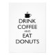 Xícara de café com "COFÉ BEBIDO E ROSQUINHAS COMIDAS." Design baseado na moralidade britânica de 1939, poster "Mantenha calma e continue". Para amantes de café.