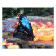 Esta linda borboleta azul e preta está apreciando um prato de frutas. Lindas asas azuis brilhantes com preto por todo o lado, compre a sua hoje! Arte original: © 2016, Rhonda Jones