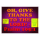 OH, DÊ OBRIGADOS AO SENHOR! - Salmo 105:1. - Bíblia de Estudo de Genebra: Dar obrigados ao LORD; chamar-lhe o seu nome: dar a conhecer os seus atos entre as pessoas. Por mais que os israelitas estivessem isentos da condenação comum do mundo, e fossem eleitos como pessoas de Deus, o profeta quer que eles se mostrem conscientes pela ação de graças. Peça a sua cópia da impressão de fotos que tem a bela imagem revelando esta escritura de Bíblia hoje!