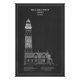 Esta impressionante representação do Farol Big Sable Point reinventa a estrutura histórica como uma planta baixa preta, dando-lhe uma presença técnica ousada e dramática. Contra um fundo preto profundo, o trabalho de linha fina parece iluminado - como giz ou tinta de desenho em filme de desenho escuro - revelando a forma do farol com precisão e intensidade.