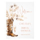 Boho Beige Wildflower Boots Chá de panela Boots Sinal de boas-vindas Boho Flores florais Bots chá de panela com um arranjo de beige e flor silvestre marrom, bota de vaquinha, vidro de champanhe e um título de caligrafia moderno.