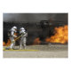 Bombeiros neutralizam um fogo ao vivo com traje de proximidade.