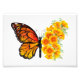 Borboleta de monarca laranja com asa decorada com papoila amarela e vibrante da Califórnia em fundo branco.