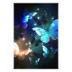 Fabulosa, brilhante, azul e amarela, borboleta noturna sobre fundo escuro.
