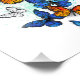 Borboleta azul-clara e voadora morfo e borboleta-monarca laranja num fundo branco. Morpho. Borboleta monarca. Design com borboletas.