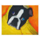 Pintura de um Boston Terrier vestindo um casaco de chuva amarelo