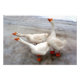 Foto de Zolotareva.Ganso branco na neve branca.Gansos são engraçados.