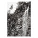 Uma fotografia a preto e branco de uma cascata numa parede de pedra, com árvores na linha da serra, e o sol brilhando na crista da cena da paisagem. Imagem Copyright ©2019 Kimberly J Tilley. www.zazzle.com/developingnature