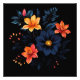 Esta trabalho de arte impressionante mostra uma vibrante explosão de flores coloridas contra um fundo preto dramático. A maneira perfeita de adicionar um toque de elegância moderna a qualquer casa, esta peça atraente é certamente um começo de conversa.