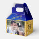 FOTO, Casamento Personalizado Caixas de Favor, Aniversário ou OCASIÕES. Sombras de Azul Real e Marinho e belas Douradas Brilhantes parecem Design com ouros Diamond Hearts adoram essas caixas de bolsas de góides do casamento. Coloque suas vestimentas de casamento nas incríveis caixas de favor azuis e douradas para adicionar à decoração da mesa de casamento. As caixas de adivinhação personalizadas podem ser transferidas para outras design de recepções de casamento personalizadas, decorações, presentes e muito mais. Para fazer alterações totalmente personalizáveis, CLIQUE EM "EDITAR USANDO A FERRAMENTA DESIGN." Aqui você pode ELIMINAR qualquer Camada Design, Texto, Redimensionar ou alterar o Estilo de Fonte e Redimensionar ou mover para ou EXCLUIR a Imagem do Casal ou Design. Você também pode ELIMINAR a Camada Azul na COLUNA ESQUERDA e Alterar a COR DE FUNDO para Qualquer COR.