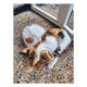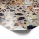 Um gato sereno calico se enrolou confortavelmente em um chão com padrão mosaico com um ambiente confortável. Os tons quentes e as texturas criam uma cena pacífica e artística, perfeita para entusiastas de gatos e artes.