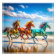 Cavalos de Vidro Multicoloridos Galopando em um Poster de Praia | Vibrant Summer Wall Art. Traga a beleza e a elegância da arte para o seu espaço com este espantoso poster com três cavalos de vidro multicoloridos galopando por uma praia arenosa num dia quente de verão. As cores vibrantes e o movimento dinâmico dos cavalos de vidro criam uma cena cativante, misturando natureza e criatividade de uma forma única. Perfeito como arte de parede para amantes de cavalos ou qualquer pessoa que queira adicionar um toque de cor e energia à sua decoração doméstica ou de escritório, esta peça evoca um sentido de liberdade e serenidade de verão.