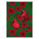 Padrão de Natal desenhado à mão com aves cardeais, flores de poinsettia, bagas de inverno e ramos de abeto