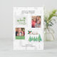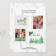 Entrega Especial de Quente Deseja o cartão de Natal com selos de correio antigos, personalizados com 2 das suas fotos favoritas e dentro de saudação personalizada. A design apresenta 4 carimbos, escritos com a letra natalícia (Feliz e Brilho, Deixe nevar e Feliz Natal) e um padrão de fundo de árvores de natal de pinheiros rabiscados numa paleta de cores gerais de verde e cinza.