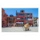 Pintura da praça de Veneza. Carrinho com caixas no meio da antiga praça italiana com edifícios coloridos em Veneza, Itália. Correio, serviço de entrega em Itália. Caixas deixadas sozinhas.