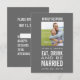 Cartões de RSVP de Casamento com Foto Moderna Comer, Beber e Casar Cinza. Elke Clarke©. Foto de amostra apenas. Substitua pela sua. Adicione o texto de RSVP do convite de casamento no verso do cartão. Use os prompts ou selecione "personalizar" para mais opções de edição.