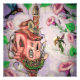 Uma encantadora cena pintada à mão de uma pequena fada e seu castelo. Glórias da manhã e um beija-flor ajudam a colocar tudo em perspectiva. As pílulas da vinha dão-lhe uma passagem para a sua casa.