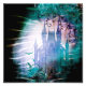 Um castelo sonhador de conto de fadas está aninhado num bonito e esupuloso jardim azul de videiras, folhas e espirais. As aves fogem da vegetação balnear, adicionando um floreio de asas à paleta aquosa, lavanda e luz rosa suave.
