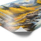 A pintura retrata uma cena digital. Um riacho que flui através de uma floresta exuberante no outono. A água cai sobre rochas lisas e arredondadas, criando uma cascata tranquila