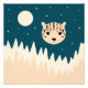 Grande céu noturno de gato, ilustração em cores pastel rudimentares de um rosto felino em um céu lua de cheio sobre uma floresta