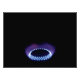 Uma chama de hob gasoso queima na escuridão