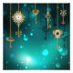 Chaves Douradas e antigas com engrenagens e marcadores penduram em correntes douradas sobre fundo verde luminoso.