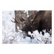 Decorado com a imagem de uma alce (alces) alimentada na neve durante o inverno no Parque Estadual de Chugach, no Alasca. Por Ted Raynor