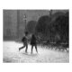Foto preta e branca de casal na chuva, centro Leon, Guanajuato, México.