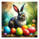 Cinzas e coelho branco da Páscoa com ovos coloridos de Páscoa.