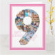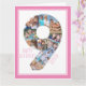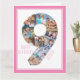 Cartão com fotos único e personalizado de 9º aniversário para uma jovem. O modelo de foto está configurado para que você adicione suas fotos favoritas a esta colagem de fotos número 9 e um dentro de fotos especial extra. Você também pode adicionar o nome dela à frente e personalizar o dentro de saudação de aniversário. O design tem uma fonte magra, tipografia química com uma paleta de cor rosa e branca. A mensagem dentro é totalmente editável e atualmente lê "Amor e alegria para nossa maravilhosa filha no seu nono aniversário". Por favor, navegue na minha loja por mais idades.