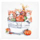 Design de Arte de Colheita de Outono - Gatinhos laranja bonitos em uma cesta com milho, abóboras e gourdes.