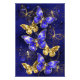 Composição de borboletas luxuosas de safira e joias de ouro em fundo azul texturizado.