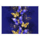 Composição de borboletas luxuosas de safira e joias de ouro em fundo azul texturizado.