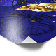 Composição de borboletas luxuosas de safira e joias de ouro em fundo azul texturizado.