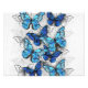 Composição vertical de borboletas de morfo realistas, azuis e brancas sobre fundo texturizado de cinzas. Borboleta azul Morpho.