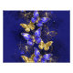 Composition of luxurious sapphire and gold jewelry butterflies on blue textured background.