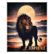 Poster de Confiança do Leão do Oceano Inspiracional. Lion Bonito ao lado da Lua Grande do Oceano ao fundo. Este Leão Inspirado AI está compartilhando alguma inspiração-Confiante. Pareceria excelente em qualquer sala, sala de aula ou escritório.