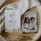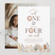 Um modelo de convite de aniversário conjunto para 1º e 4º aniversário com rostos de leão em aquarela e folhas de safari em tons neutros ao longo da parte inferior. Você pode adicionar sua própria foto ao verso. Perfeito para a sua festa de aniversário com tema safari 'Wild One' e 'Four Ever Wild'!