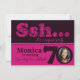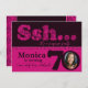Convite de festas de 70 surpresa rosa-quente e cor-de-rosa-escuro de lado duplo. Adicione a foto da sua aniversariante e personalize com seus próprios detalhes. Design exclusivo por Sarah Trett para www.mylittleeden.com