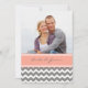 cartões com fotos personalizados de convite de casamento em cinzas de carvão elegantes e contemporâneas, cor-de-pêssego, cor-de-rosa e branco, e padrão de riscas de chevron casual. Personalize esses convites com seus detalhes de casamento e sua própria foto. Disponível em produtos correspondentes para todas as suas necessidades de casamento.