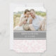 Cartões de modelo personalizados de fotos em cinzas elegantes e contemporâneas de carvão negro, cor-de-rosa claro pastel branco, clássico branco e modelo de vintage floral chic. Personalize esses convites com seus detalhes de casamento e sua própria foto. Disponível em produtos correspondentes para todas as suas necessidades de casamento.
