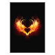 Coração de anjo com asas flamejantes em fundo preto.