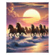 Capturar a beleza majestosa da natureza com esta impressionante imagem de cavalos selvagens galopando ao longo da costa no pôr do sol. Os cavalos poderosos quebram as ondas suaves à medida que a luz ouro do pôr do sol lança um brilho quente através da cena. O céu é pintado com tons ricos de laranja e ouro, criando uma atmosfera serena, porém dinâmica, que captura a força bruta e a liberdade da natureza. Perfeito para aqueles que apreciam a beleza indomada da natureza, esta cena impressionante é uma verdadeira celebração da vida em movimento.