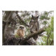 Uma coruja-coroa-excelente-mãe e o seu jovem olhar para fora do seu ninho de árvores.