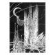 Esta é uma ilustração de fantasia representando "Um enorme castelo de pedra ligado à lua crescente." Esta é uma ilustração monocromática desenhada com lápis.